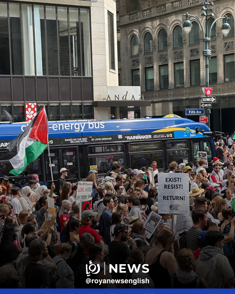 Thousands of demonstrators gathered at the steps of the New York Public Library on Saturday, August 16, for an "Emergency Mass March" to protest what organizers called a "US-funded, Israeli famine" in the Gaza Strip.