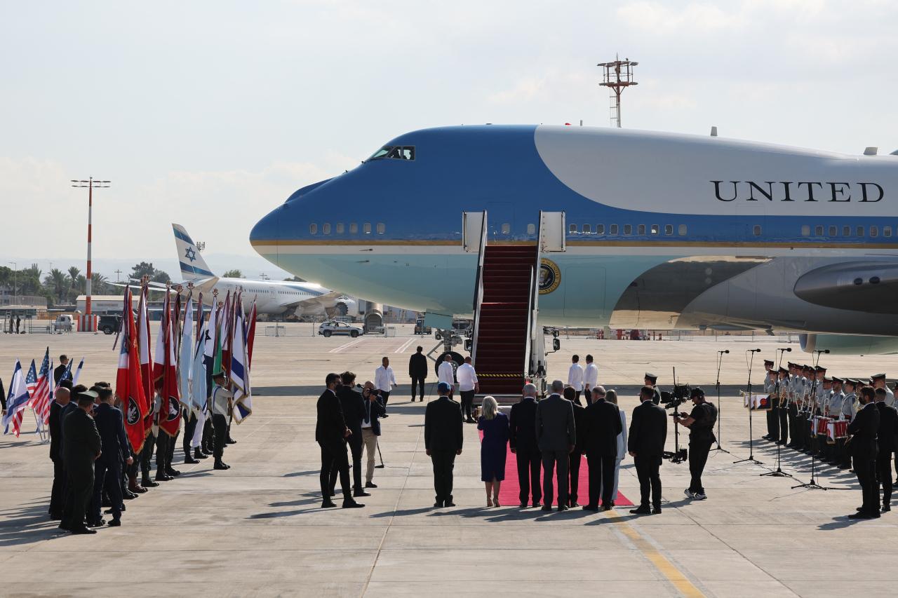 The US leader was greeted on a red carpet at Ben Gurion airport by ‘Israel’s’ Prime Minister Benjamin Netanyahu and President Isaac Herzog.