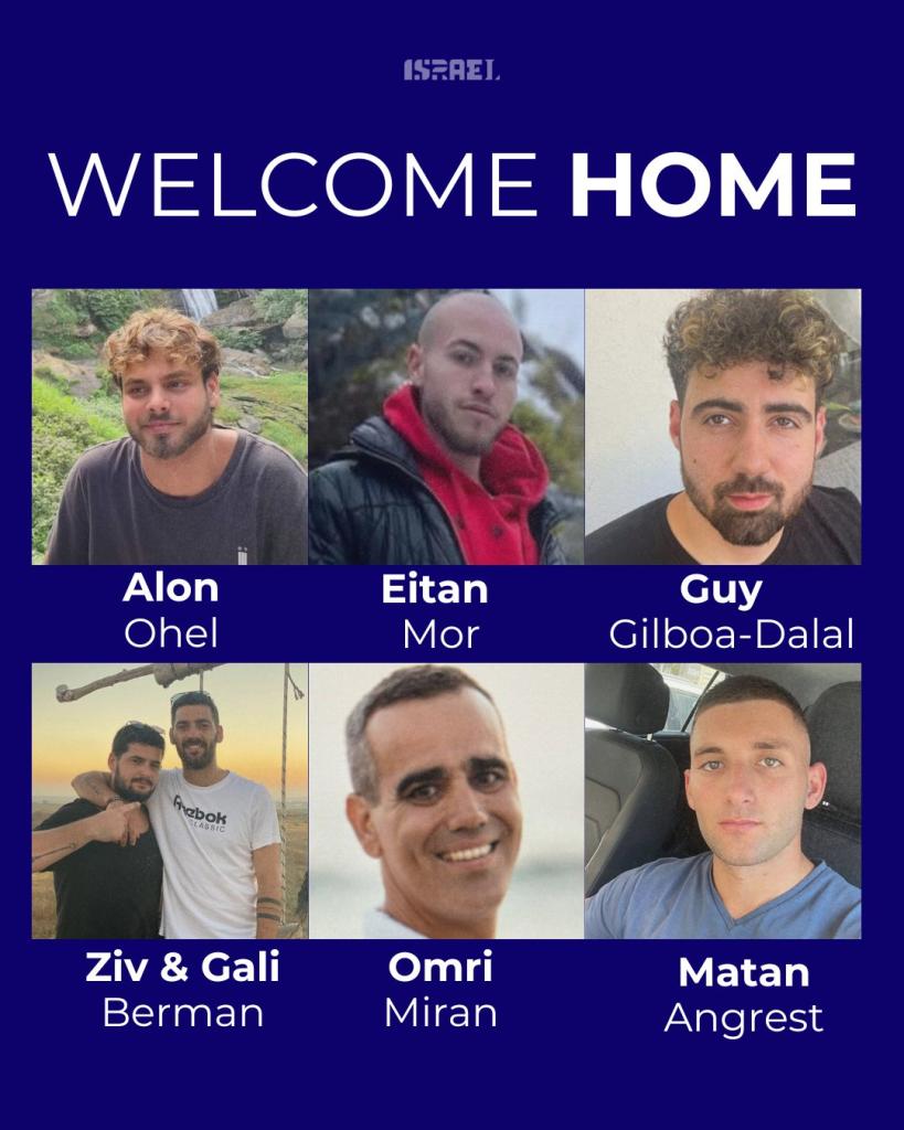 "We've been waiting 738 days to say this: Welcome home," the ‘Israeli’ foreign ministry posted on X, identifying the released captives as Guy Gilboa Dalal, Eitan Mor, Matan Angrest, Alon Ohel, Gali and Ziv Berman and Omri Miran.