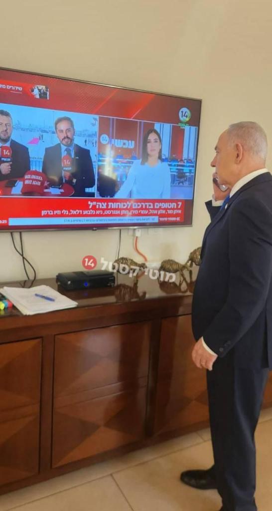 PHOTO - Netanyahu seen watching the captive handover in Gaza