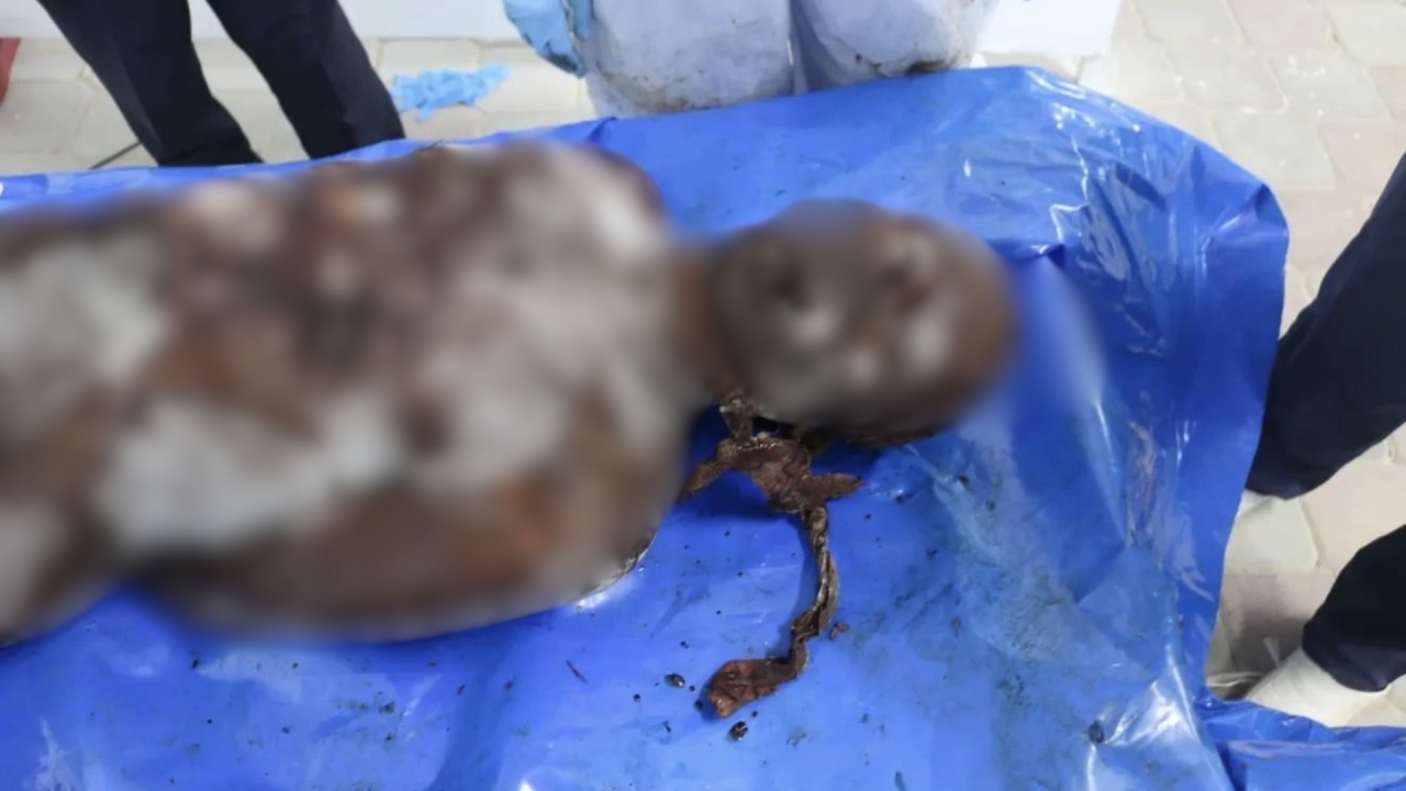 The graphic details of the body, extensive burns, visible deformities, and signs of severe trauma, serve as a stark reminder of the ongoing violence faced by Palestinians.