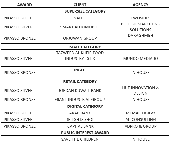 The 21st edition of the Pikasso d’Or Awards Ceremony took place on Sunday 18 January at the Four Seasons Amman. The guest list included leading advertising agencies and clients, as well as representatives from the media.