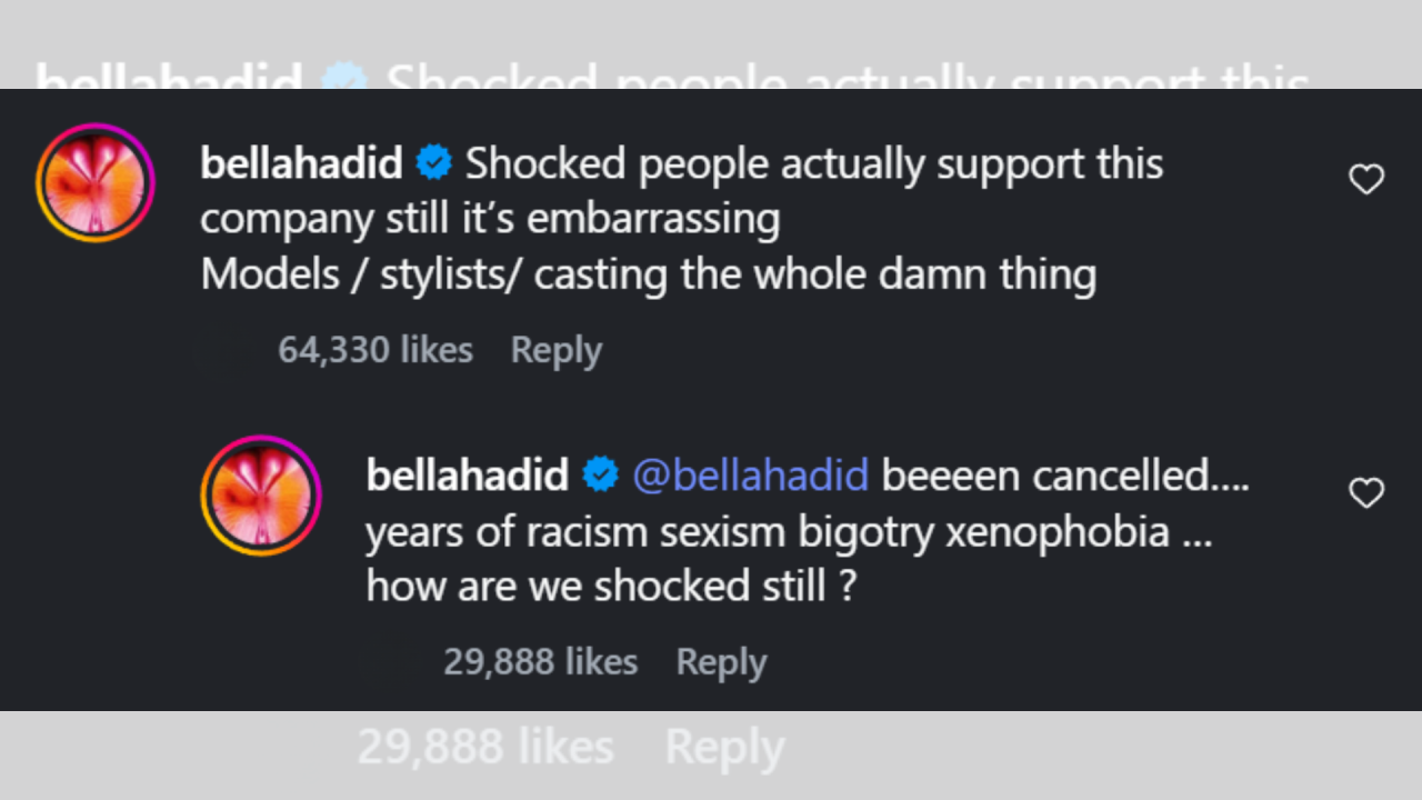 Hadid's remarks, posted on Instagram, highlighted what she described as the brand's longstanding issues with racism, sexism, bigotry, and xenophobia, reigniting discussions about inclusivity in the fashion industry.