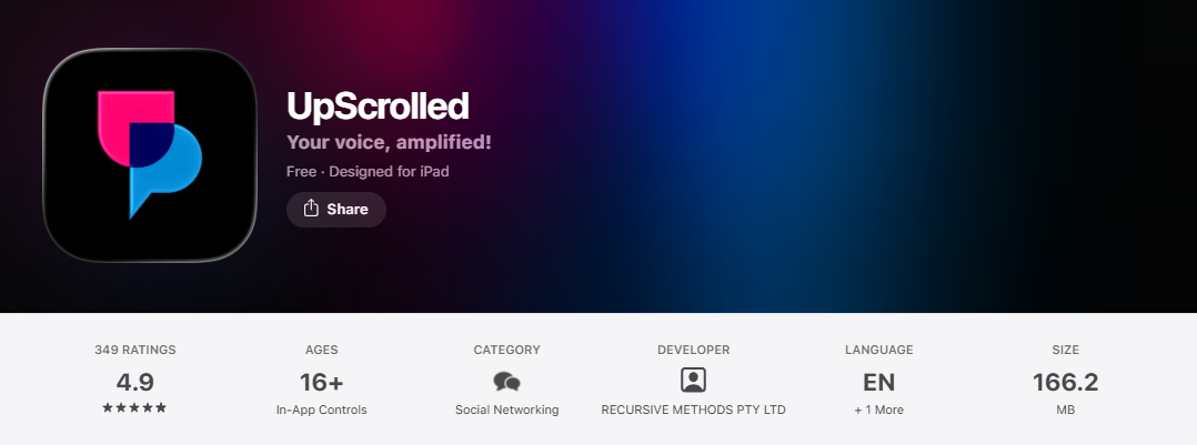 Launched in June 2025 by Recursive Methods Pty Ltd, UpScrolled positions itself as an alternative to mainstream social networks, particularly after controversies regarding content on Palestine and Gaza on other social media platforms.