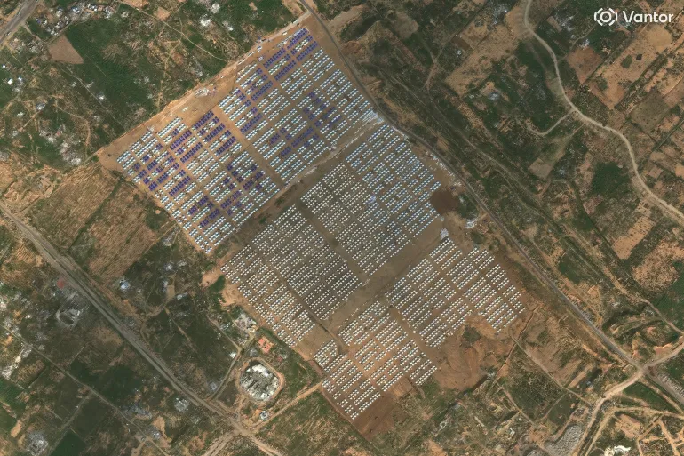 - Satellite images reveal sprawling displacement camps in Zahra, south of Gaza City.