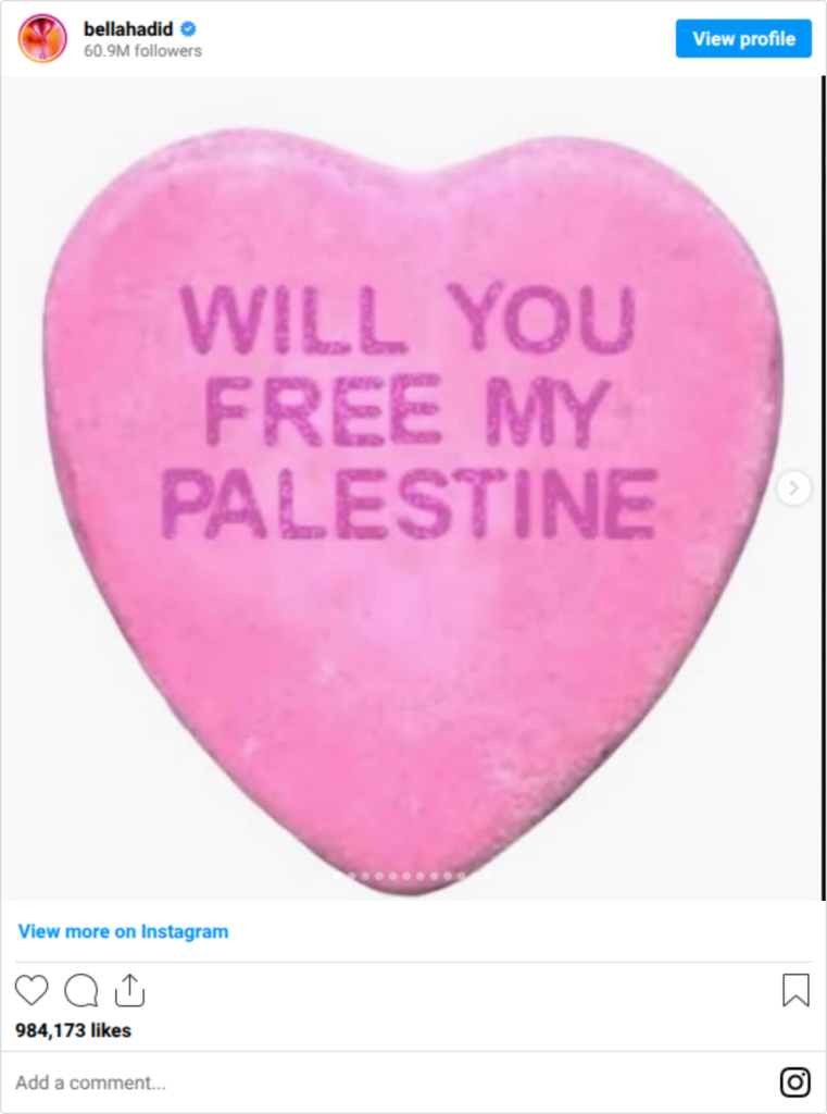 Supermodel and Palestinian-American activist Bella Hadid shared a post on Instagram - which has become a yearly tradition - amassing nearly a million likes within hours while captioned simply “Every year”.