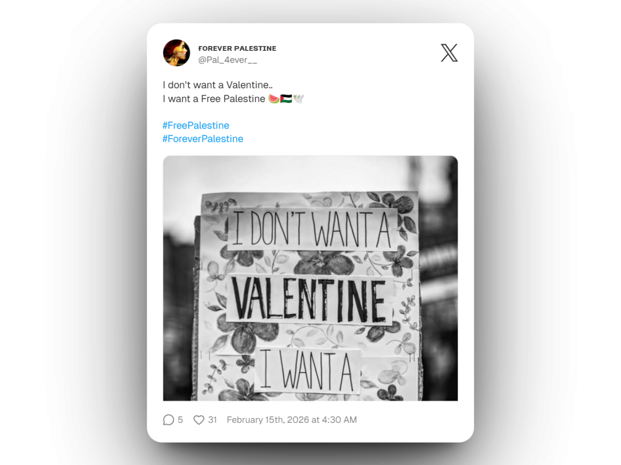 As couples around the world exchanged roses, chocolates, and whispers of affection on Valentine's Day, a sobering digital chorus echoed from the rubble-strewn streets of Gaza.
